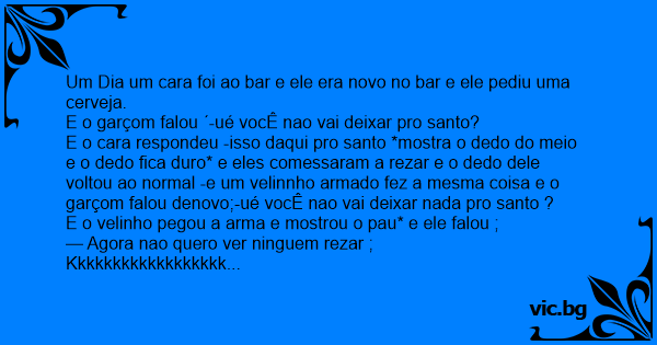 E o cara respondeu -isso daqui pro santo *mostra o dedo do meio e o dedo fiса durо* e eles comessaram a rezar e o dedo dele voltou ao normal -e um velinnho armado fez a mesma coisa e o garçom falou denovo;-ué vocÊ nao vai deixar nada pro santo ?