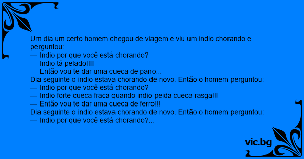 Um dia um certo homem chegou de viagem e viu um indio chorando e perguntou: