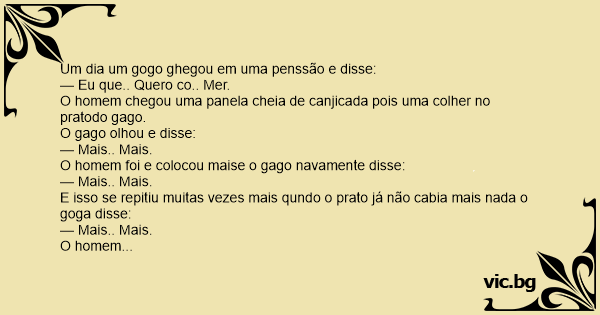 E isso se repitiu muitas vezes mais qundo o prato já não cabia mais nada o goga disse: