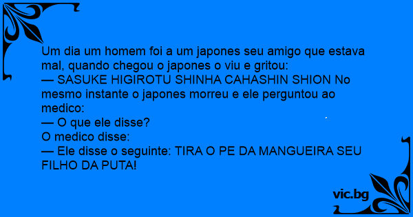— SASUKE HIGIROTU SHINHA CAHASHIN SHION No mesmo instante o japones morreu e ele perguntou ao medico: