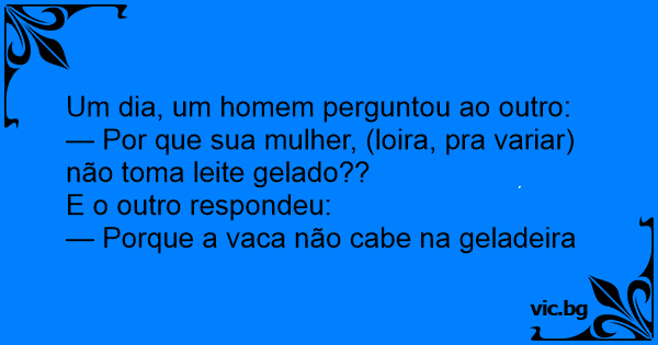 — Por que sua mulher, (loira, pra variar) não toma leite gelado??