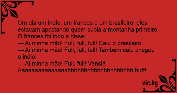 Um dia um indio, um frances e um brasileiro, eles estavam apostando quem subia a montanha primeiro. O frances foi indo e disse;