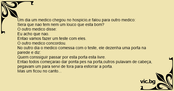 Um dia um medico chegou no hospicio,e falou para outro medico: