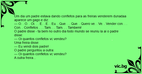 Um dia um padre estava dando confletos para as freiras venderem dunadaa aparece um gago e diz: