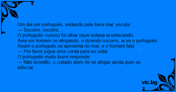 Avia um homem se afogando, e dizendo socorro, ai ve o português.