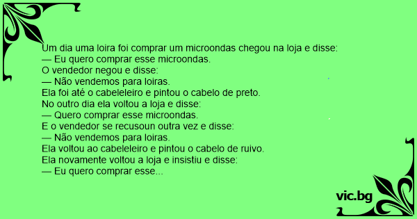 — Dona eu sei que a senhorita é loira porque isso não é um microondas é uma bela televisão!