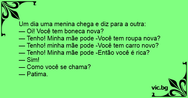 Um dia uma menina chega e diz para a outra: