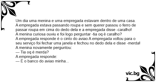 A empregada responde é o cinto do aviao A empregada voltou para o seu serviço foi fechar uma janela e fechou no dedo dela e disse -меrdа!