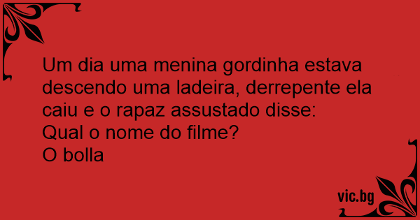 Um dia uma menina gordinha estava descendo uma ladeira, derrepente ela caiu e o rapaz assustado disse: