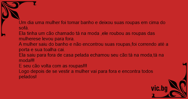 Ela tinha um cão chamado tá na moda ,ele roubou as roupas das mulherese levou para fora.