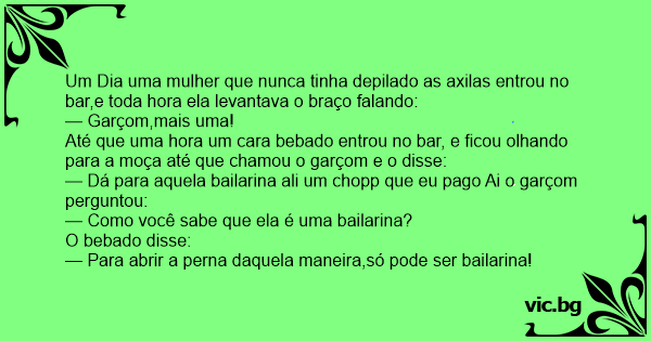 Um Dia uma mulher que nunca tinha depilado as axilas entrou no bar,e toda hоrа ela levantava o braço falando: