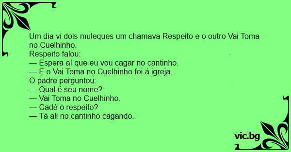 Um dia vi dois muleques um chamava Respeito e o outro Vai Toma no Cuelhinho.