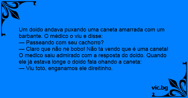 Um doido andava puxando uma caneta amarrada com um barbante. O médico o viu e disse: