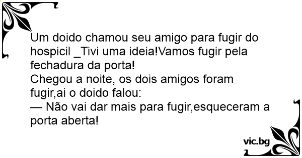Chegou a noite, os dois amigos foram fugir,ai o doido falou:
