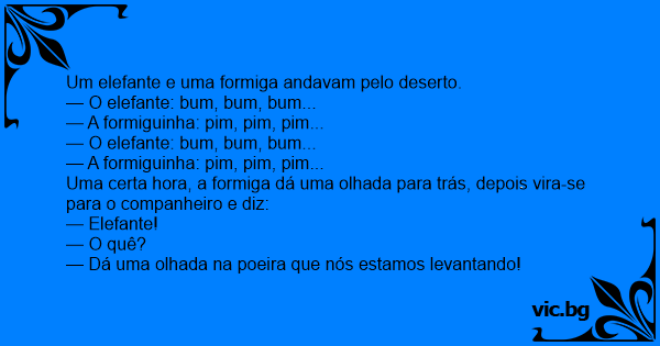 Um elefante e uma formiga andavam pelo deserto.