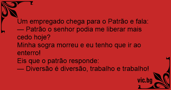 — Patrão o senhor podia me liberar mais cedo hoje?