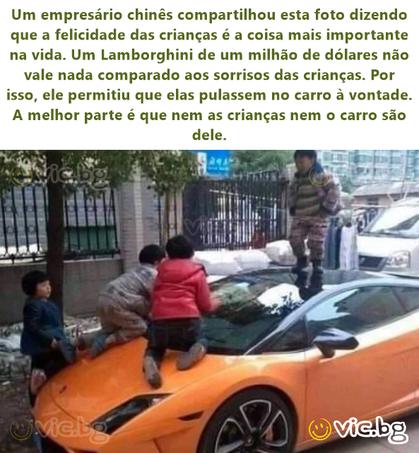 Egy kínai üzletember megosztotta ezt a képet, mondván, hogy a gyerekek boldogsága a legfontosabb az életben. Egy egymillió dolláros Lamborghini semmit sem ér a gyerekek mosolyához képest. Ezért...