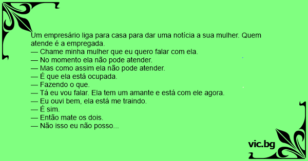 Um empresário liga para casa para dar uma notícia a sua mulher. Quem atende é a empregada.
