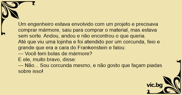 Até que viu uma lojinha e foi atendido por um corcunda, feio e grande que era a cara do Frankenstein e falou: