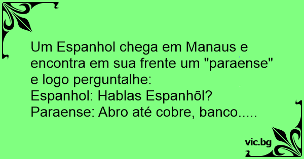 Um Espanhol chega em Manaus e encontra em sua frente um "paraense" e logo perguntalhe: