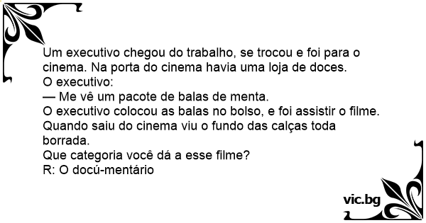 Um executivo chegou do trabalho, se trocou e foi para o cinema. Na porta do cinema havia uma loja de doces.