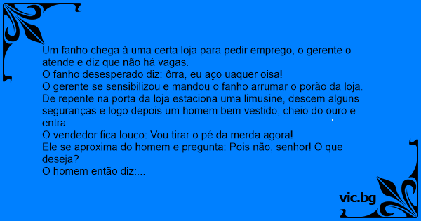 Um fanho chega à uma certa loja para pedir emprego, o gerente o atende e diz que não há vagas.