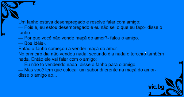 — Mas você tem que colocar um sabor diferente na maçà do amor- disse o amigo ao fanho.