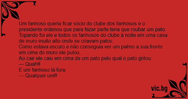 Um fanhoso queria ficar sócio do clube dos fanhosos e o presidente ordenou que para fazer parte teria que roubar um pato.