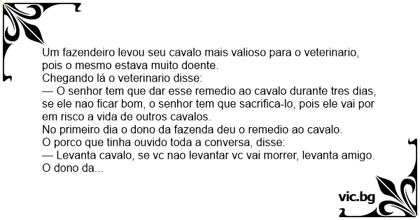 No terceiro dia o dono da fazendo deu o remedio de novo, e nada. Ai o veterinario disse: