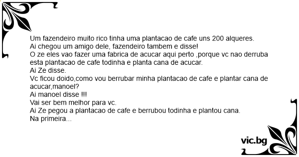 Vc ficou doido,como vou berrubar minha plantacao de cafe e plantar cana de acucar,manoel?