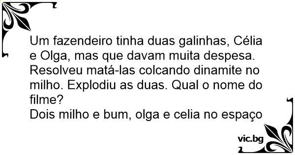 Um fazendeiro tinha duas galinhas, Célia e Olga, mas que davam muita despesa. Resolveu matá-las colcando dinamite no milho. Explodiu as duas. Qual o nome do filme?