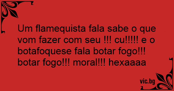 Um flamequista fala sabe o que vom fazer com seu !!! cu!!!!! e o botafoquese fala botar fogo!!! botar fogo!!! moral!!! hexaaaa