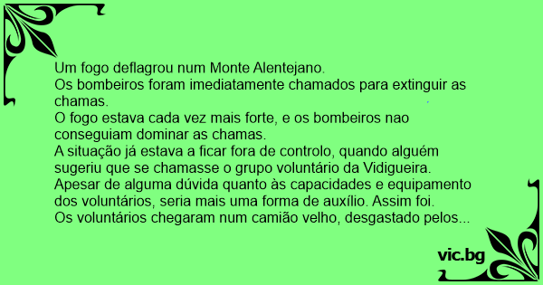 A situação já estava a ficar fora de controlo, quando alguém sugeriu que se chamasse o grupo voluntário da Vidigueira.