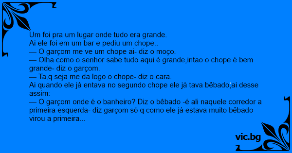 — Olha como o senhor sabe tudo aqui é grande,intao o chope é bem grande- diz o garçom.