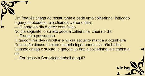 Um freguês chega ao restaurante e pede uma colherinha. Intrigado o garçom obedece, ele cheira a colher e fala: