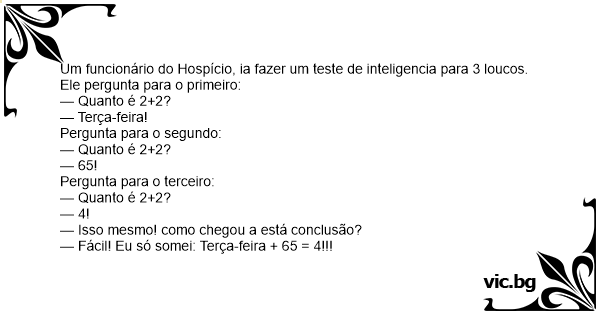 Um funcionário do Hospício, ia fazer um теsте de inteligencia para 3 loucos.