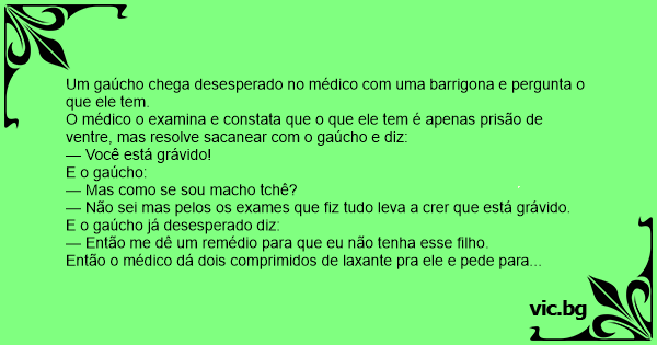 O médico o examina e constata que o que ele tem é apenas prisão de ventre, mas resolve sacanear com o gaúcho e diz: