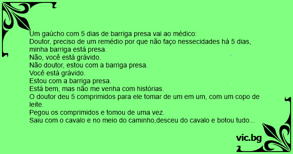 Um gaúcho com 5 dias de barriga presa vai ao médico: