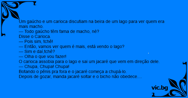 Um gaúcho e um carioca discutiam na beira de um lago para ver quem era mais macho.