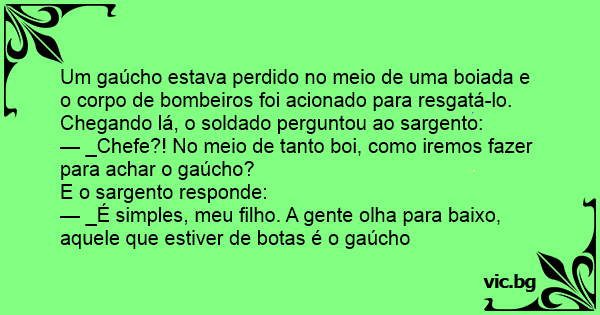 — _É simples, meu filho. A gente olha para baixo, aquele que estiver de botas é o gaúcho