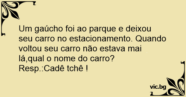 Um gaúcho foi ao parque e deixou seu carro no estacionamento. Quando voltou seu carro não estava mai lá,qual o nome do carro?