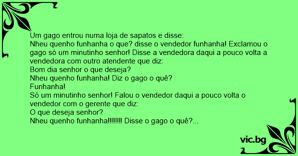Nheu quenho funhanha o que? disse o vendedor funhanha! Exclamou o gago só um minutinho senhor! Disse a vendedora daqui a pouco volta a vendedora com outro atendente que diz: