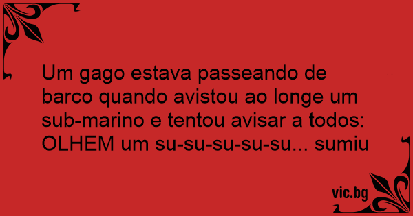 Um gago estava passeando de barco quando avistou ao longe um sub-marino e tentou avisar a todos: