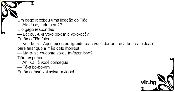 — Vou bem... Aqui, eu estou ligando para você dar um recado para o João, para falar que a mãe dele morreu!