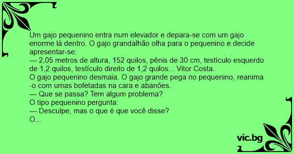 Um gajo pequenino entra num elevador e depara-se com um gajo enorme lá dentro. O gajo grandalhão olha para o pequenino e decide apresentar-se:
