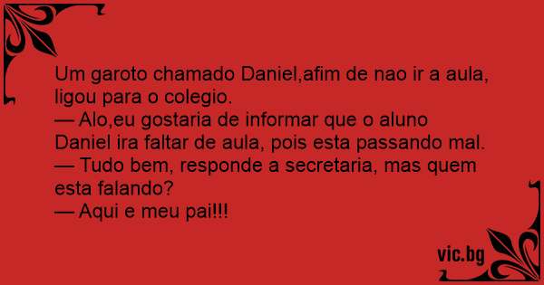 Um garoto chamado Daniel,afim de nao ir a aula, ligou para o colegio.