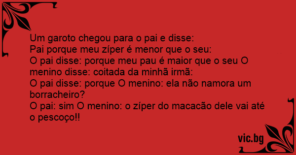 O pai disse: porque meu раu é maior que o seu O menino disse: coitada da minhã irmã: