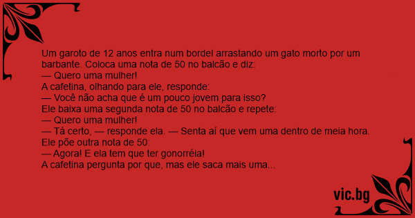 A cafetina pergunta por que, mas ele saca mais uma nota de 50 e repete: