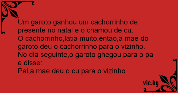 Um garoto ganhou um cachorrinho de presente no natal e o chamou de cu.