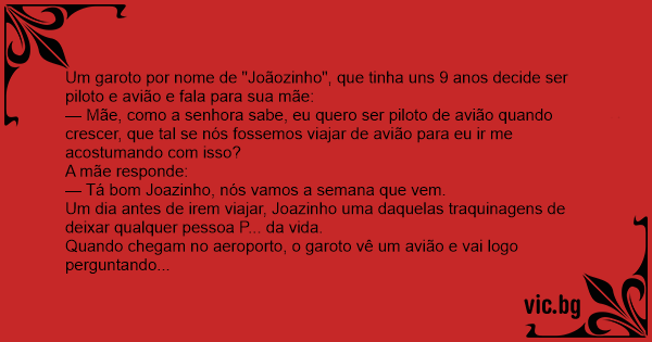 Um garoto por nome de "Joãozinho", que tinha uns 9 anos decide ser piloto e avião e fala para sua mãe: